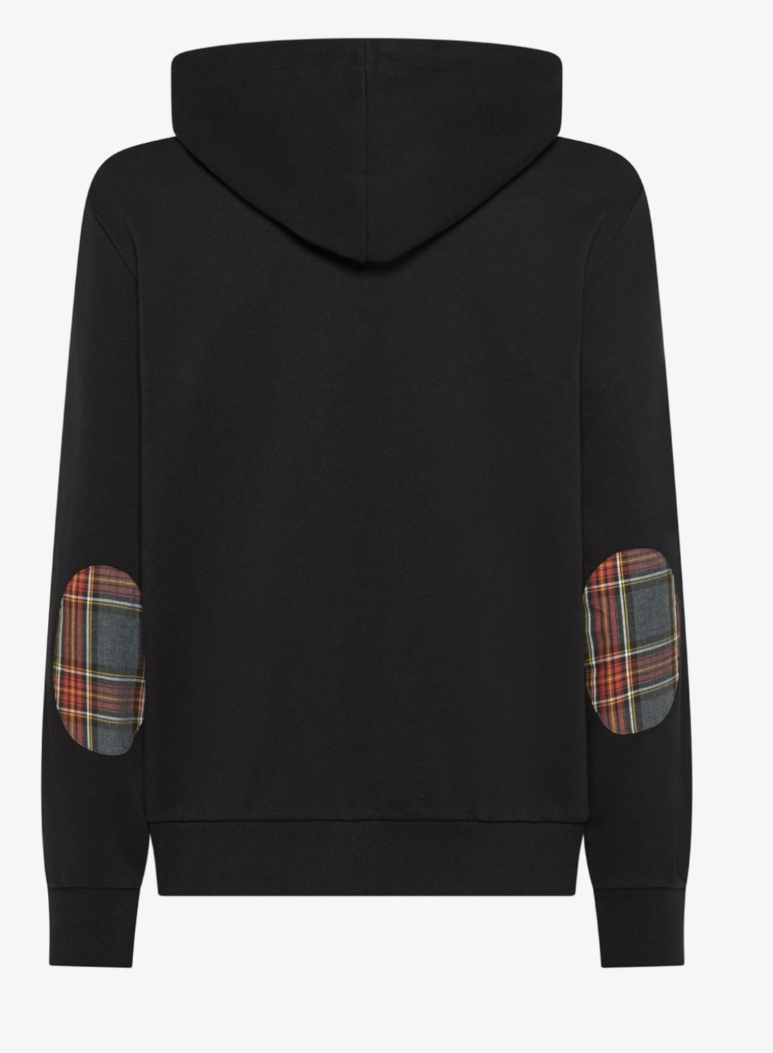Felpa full zip uomo Art F45124, con cappuccio con fodera check e patch check a contrasto ricamate sui gomiti. Tasche laterali e logo ricamato sul petto.
