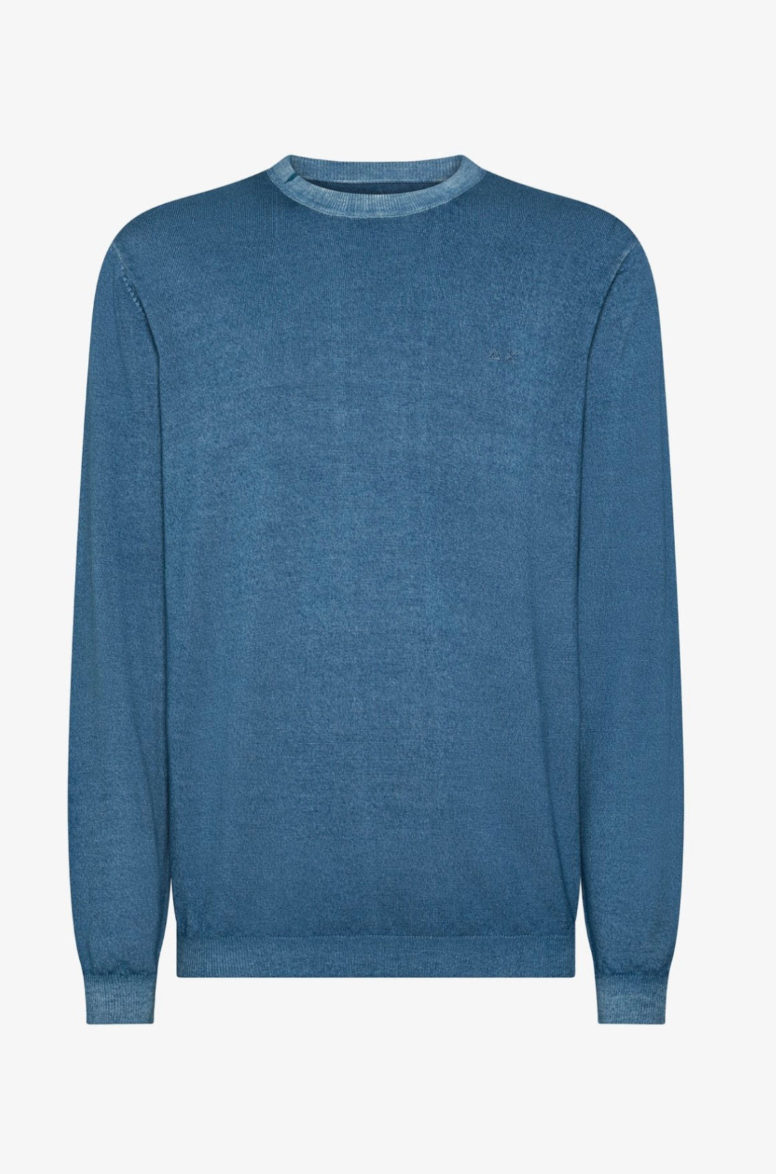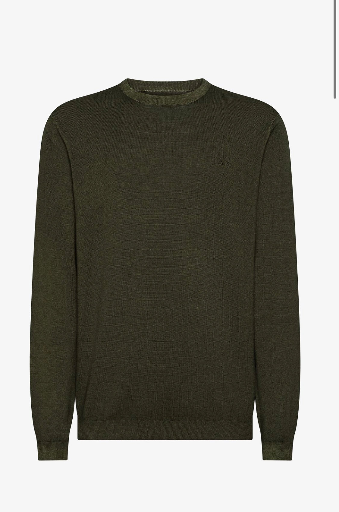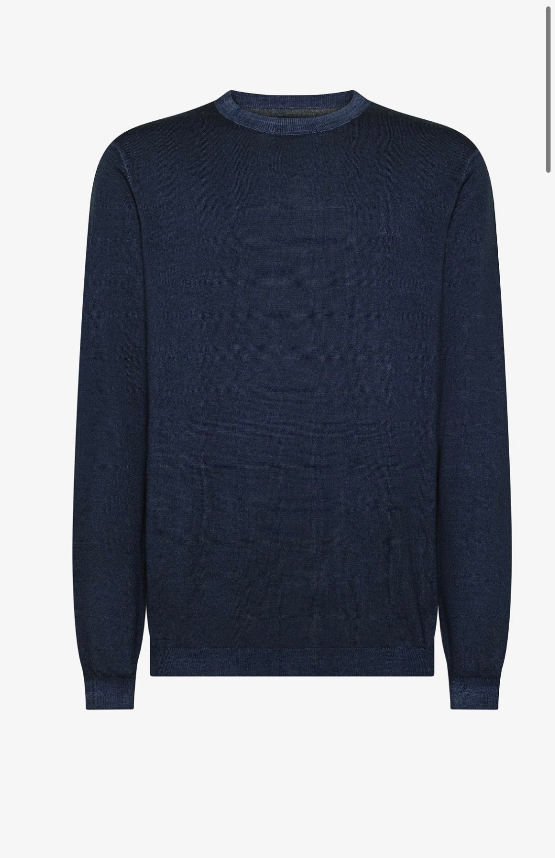 Maglia uomo girocollo Art K45130, realizzata in lana con effetto vintage. Logo ricamato sul petto.