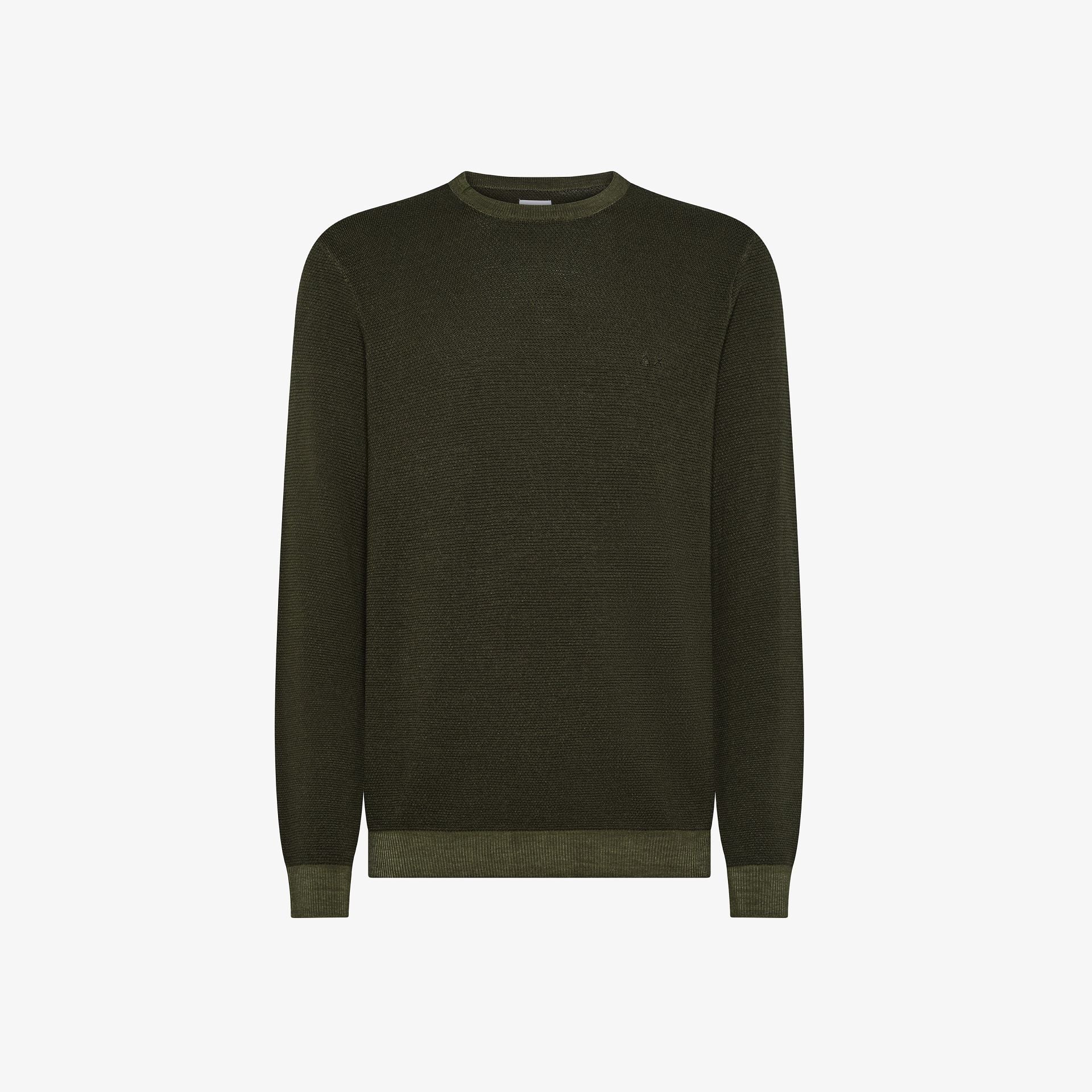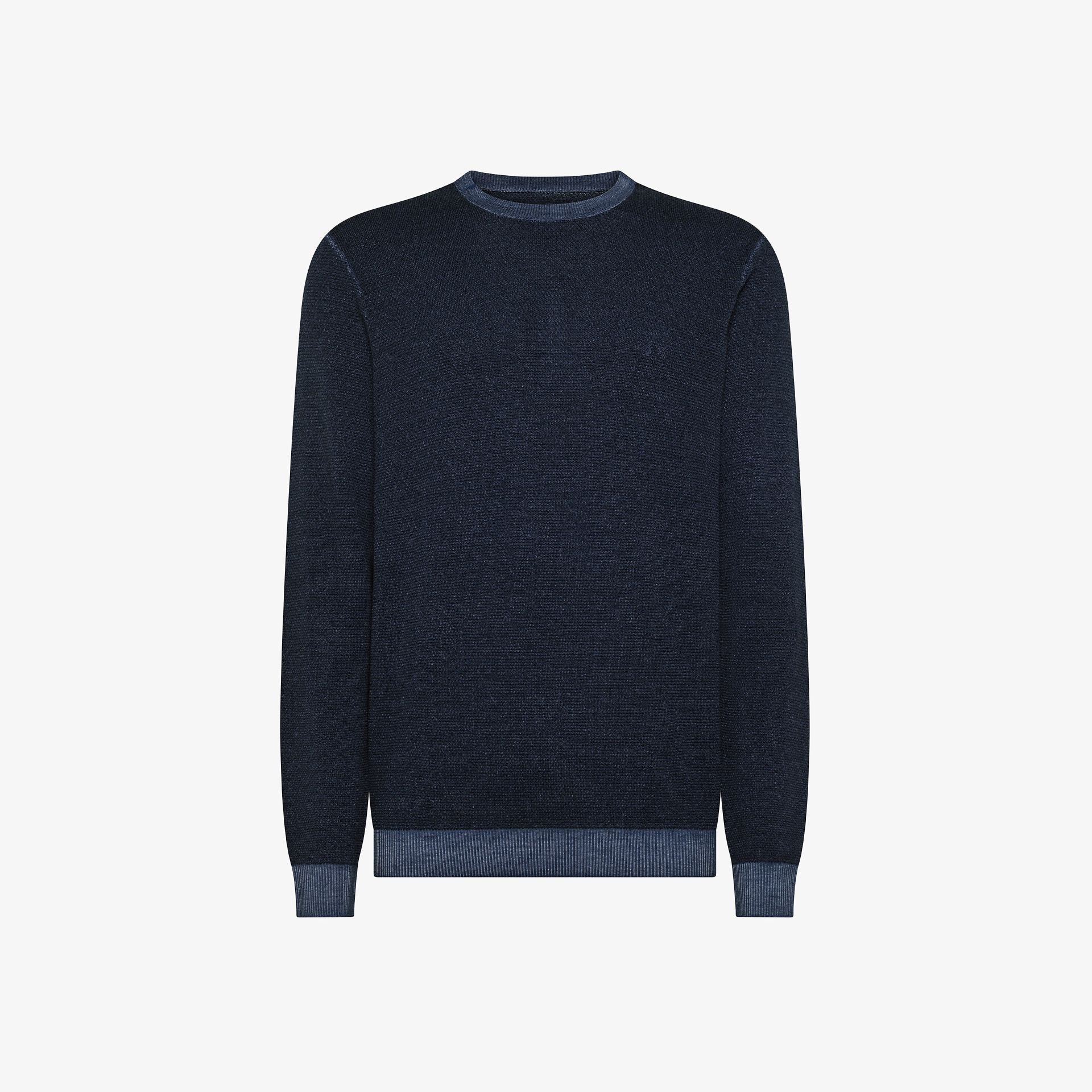 Maglia uomo girocollo K45128, in filato di lana effetto vintage con lavorazione punto riso. Bordi a contrasto rifiniti a costine. Logo ricamato sul petto.